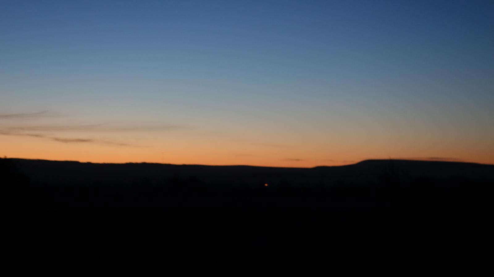 Daarboven keek ik terug naar the vale of Mowbray, en zag in de verte de Pennines van een paar dagen geleden.