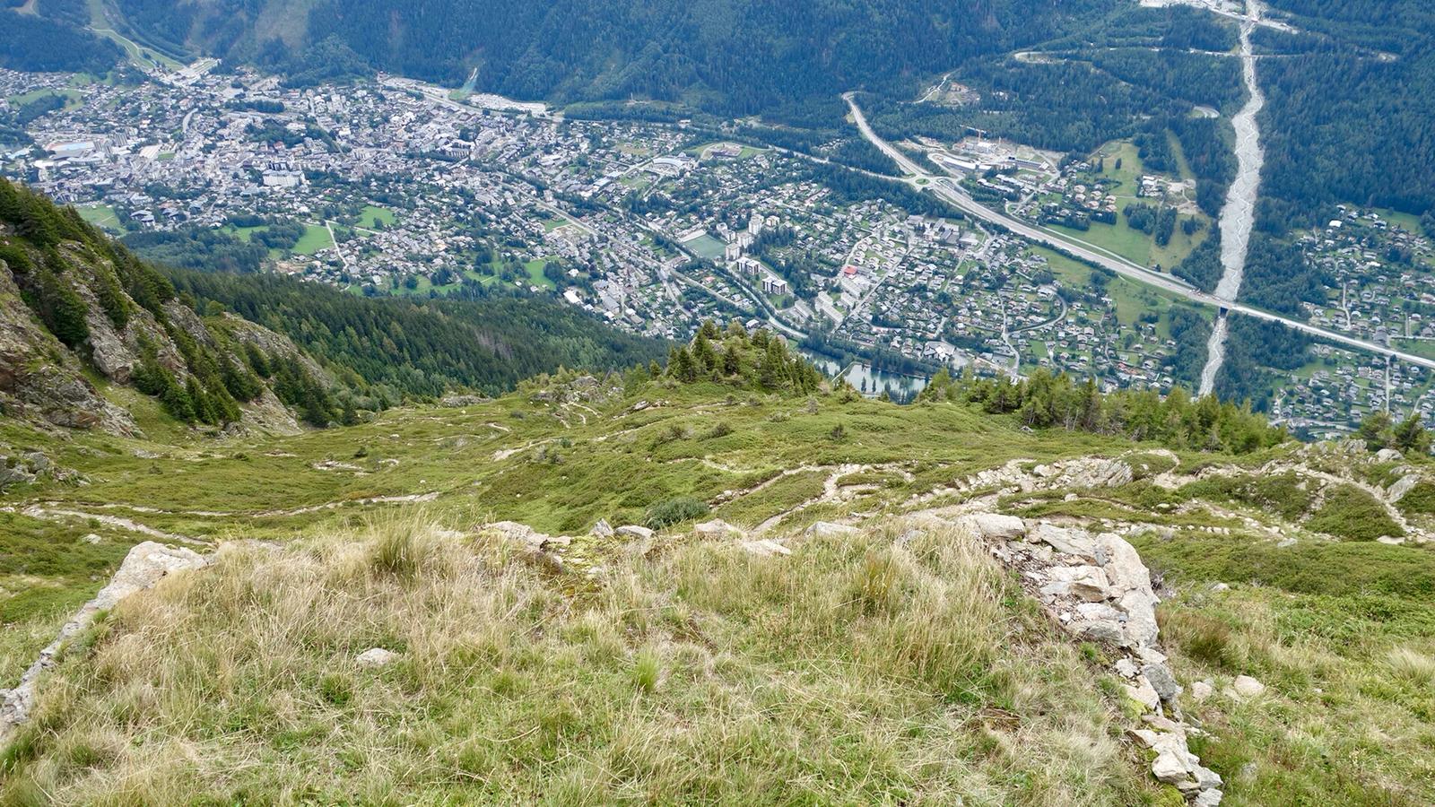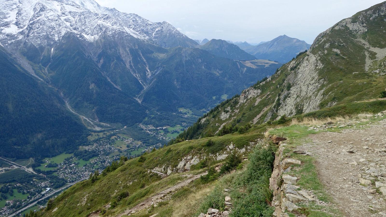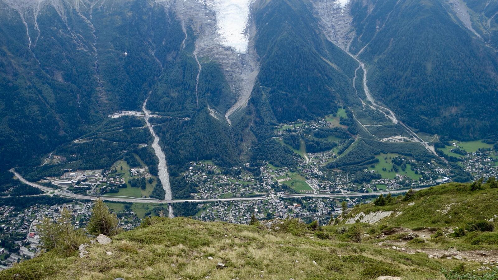 Je hoort de hele dag wel de helicopters: redding en toeristen voor wie een gewone wandeling niet genoeg is. En dan ook de snelweg door het dal en je hebt maar steeds die blik op Chamonix en les Houches. Maar je bent er nog niet!
