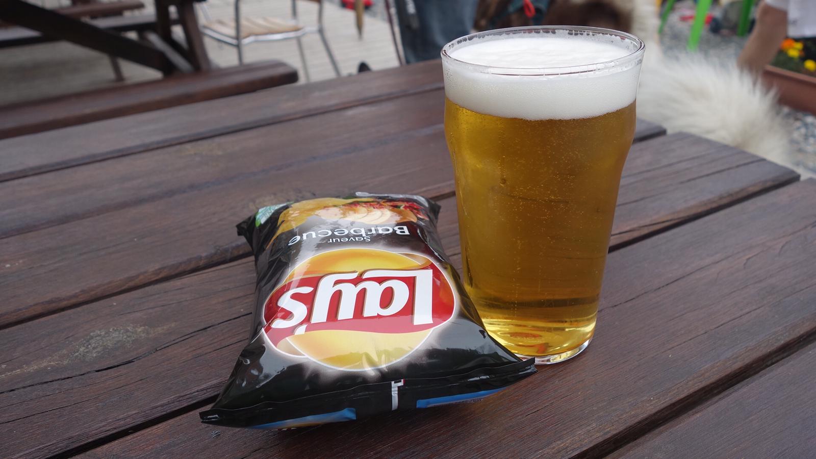 In les Houches mijn traditionele biertje (en chips) en op de bus naar de camping en onder de douche: het zit erop!